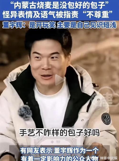 11月,董宇辉在内蒙古进行专场带货,当介绍到烧麦这一食物时,他并未表现出尊重,反而称内蒙古的特色肉烧麦是“裂开的包子”,甚至还露出了鄙夷的表情。