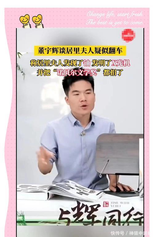 2024年9月,董宇辉在讲解居里夫人时出现了明显错误,称居里夫人拿到了诺贝尔文学奖,之后这段视频在互联网上迅速传播,而董宇辉的名字也因此冲上热搜,因为这件事,不少网友都对董宇辉的“文化人”人设产生质疑。